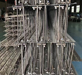 上、下弦鋼筋:采用三級(jí)熱軋盤螺鋼筋HRB400級(jí)、或冷軋帶鋼筋CRB550級(jí)。腹桿鋼筋:采用冷軋光圓鋼筋TD∨、TDM底模鋼板:根據(jù)用途不同,可采用鍍鋅鋼板或冷軋鋼板,常用厚度為0.4-0.5mm雙面鍍鋅量120gm。