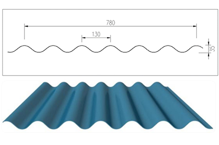 ● HL35-130-780型波紋板,公母肋搭接設(shè)計(jì)合理,極大限度地避免墻面出現(xiàn)搭接縫,提升墻面整體平整度和美觀性。做橫鋪墻面,具有流暢的波紋狀外觀,可做彎弧板,能滿足各類傳統(tǒng)和現(xiàn)代的建筑設(shè)計(jì)風(fēng)格。