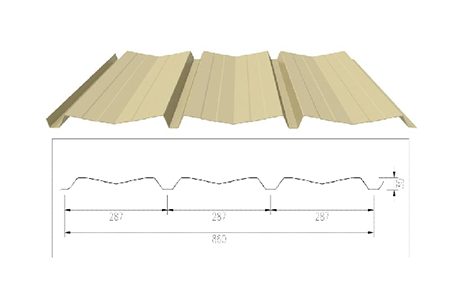 ● HL30-287-860型外墻板,外形美觀,經(jīng)濟(jì)實(shí)用。有靈感的波紋設(shè)計充分滿足各類傳統(tǒng)或現(xiàn)代的建筑創(chuàng)意。由于該板型的特點(diǎn),在檁條處對保溫棉的接觸面較少,不易形成的冷橋面,同樣條件下的保溫棉,與此板型配合能達(dá)到更優(yōu)的保溫隔熱效果。獨(dú)特的空腔防水搭接設(shè)計杜絕了雨水毛細(xì)滲漏現(xiàn)象,解決了墻面?zhèn)认虼罱勇┧畣栴}。相較其他墻面板型,VP3墻面板實(shí)際利用率高,板型較寬,在同樣人工效能的情況下,板型越寬安裝效能越高,單位人工安裝費(fèi)用越低。